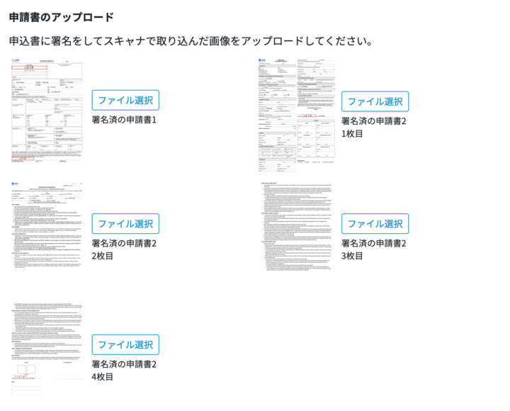 パスポートのコピーと本人とパスポートが映っている画像をアップロードし、最後に利用規約、個人情報保護規約をお読み頂き、申請を完了させればお申し込み完了です。
